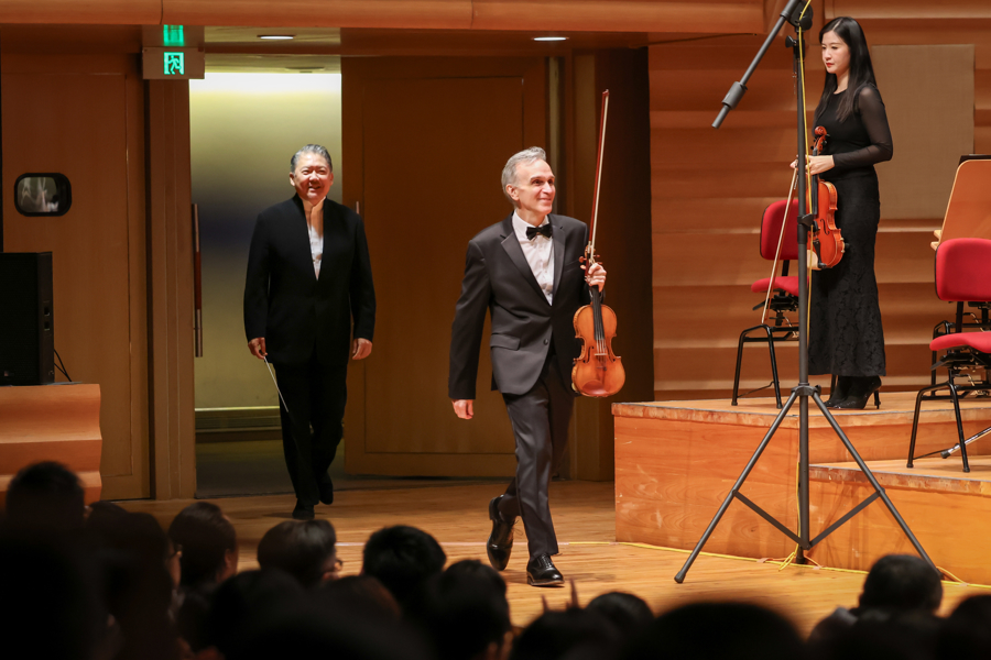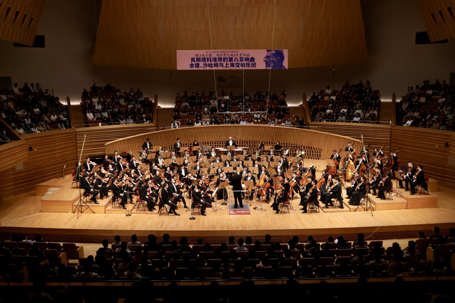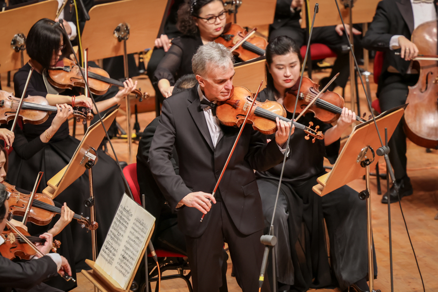 今晚的演出还有一段小插曲。正当观众陶醉在勃小协的美妙乐声中时,沙哈姆手中的琴弦突然断了,他迅速接过乐团首席马骏一的琴继续演奏,还不忘用中文和观众打招呼“不好意思”。等到第一乐章结束时,余隆示意给沙哈姆一些时间更换琴弦,全场爆发出热烈掌声,观众耐心等待,无一人退场。这一刻,是观众和艺术家的温情互动,也是上海观众观演素质的最好体现。