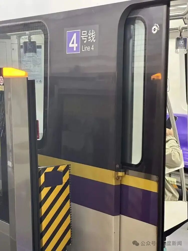 而紫色条纹的4号线车厢内,座椅则全部是紫色;